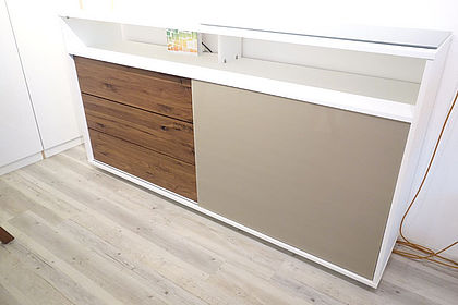 Ob Kommoden oder Sideboard, Highboard oder Lowboard, mit breitem oder schmalem Fach, mit Schubkasten oder offen, zum stellen ins Schlafzimmer oder zum hängen in den Flur, mit oder ohne Griffe, vielen kleinen oder wenig großen Türen zum schieben oder klappen. Planen Sie mit uns Ihre Wunschkommode.